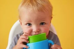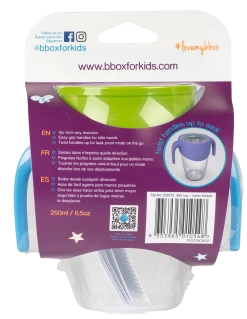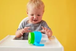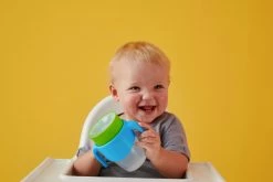 Wide profile handles are easy for little hands to grip for self-led drinking, and offer two-mode function for use at home and on-the-go. Twist handles down to expose the silicone rim for easy drinking, then twist handles up to lock and seal for no leaks in bags or prams, plus the silicone rim stays clean and hygienic.
