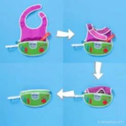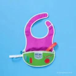 Plus, a flexible silicone spoon is also included with the travel bib.