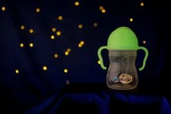 The sippy cup ensures that tots can drink to the very last drop. They can also drink lying down, making it the ideal transition cup from bottle/breastfeeding to milk in a cup. Encourages independence with easy-grip handles and a simple flip-top lid.