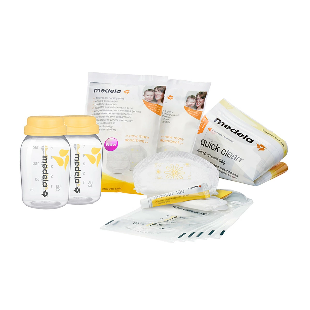 The Medela Breastfeeding Starter Kit contains a range of essential products to provide an easy right start to your breastfeeding experience.