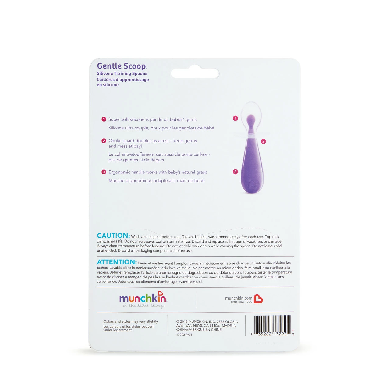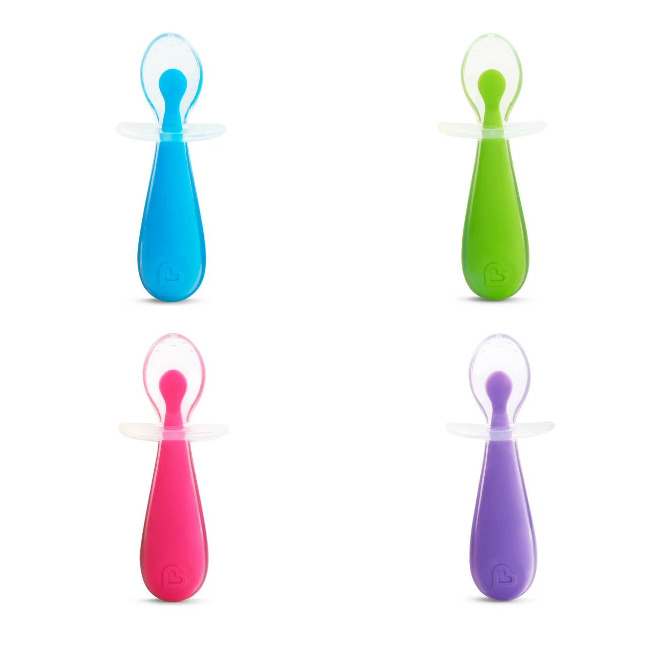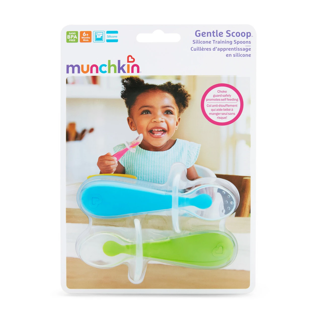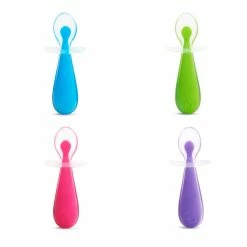 MEALTIME SCOOP! Let’s face it. Babies love chewing on straws and spoons, and sometimes that can veer into dangerous territory. This multitasking toddler spoon set was designed with several common self-feeding issues in mind. Made of ultra soft silicone that’s easy on babies’ gums, each spoon features a first-of-its-kind choke guard that acts as a spoon rest at the same time. The unique anti-choking feature prevents spoons from going beyond a safe point in their mouths and keeps tips off tables and floors (an otherwise Herculean feat!). Take mealtime to the next level of safety and cleanliness with Gentle Scoop™ toddler spoons.
