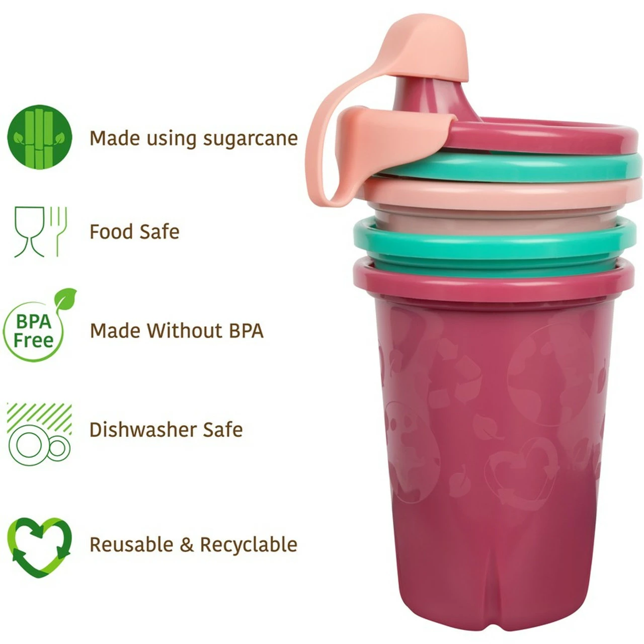 - Reuse: These sturdy cups are dishwasher safe, making them easy to keep clean so they can be used over and over again