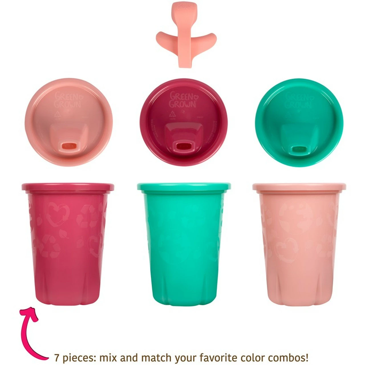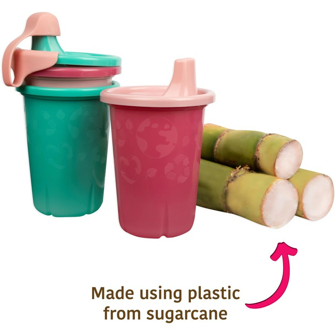 GreenGrown™ Sippy Cups give you a new option when choosing a toddler sippy cup. As all parents know, baby steps might be small, but they lead to big and exciting things. GreenGrown is rooted in the idea that we all need to think about where we are headed and look at new ways of getting there. These sippy cups still give you the spill proof, dishwasher safe benefits your family is looking for in a sippy cup, but are made in a fresh way. Our GreenGrown products use a mix of 55% plastic that is produced from sugarcane and 45% of other recyclable plastics to give them exceptional durability and flexibility. Sugarcane is a renewable raw material, and using it in place of finite fossil fuels is more sustainable and helps reduce greenhouse gas emissions. It’s our first step in a new direction. And of course, our GreenGrown Sippy Cups and Lids are also easy to recycle in most communities. When it’s time to let them go, just snap on the lid and toss it into your recycling bin!
