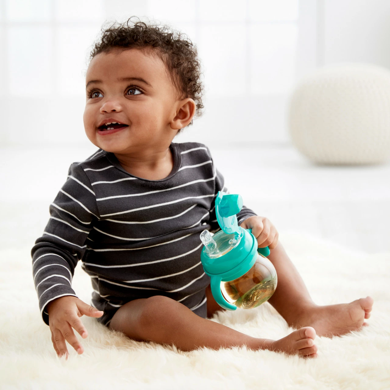 The Soft Spout Sippy Cup has a unique, almond-shaped spout that opens easily as soon as your little one’s lips touch it, and is specially designed to make it an easy transition from bottles or breast feeding. The sturdy cap covers the silicone spout to keep it clean in diaper bags, and prevents leaking.