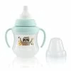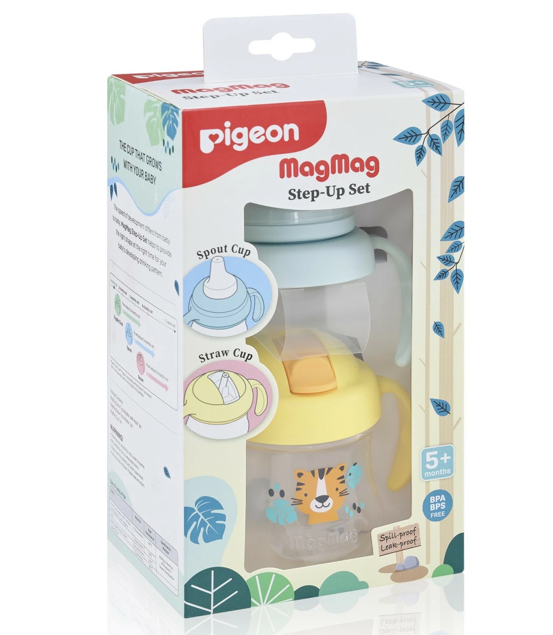 The Pigeon MagMag Step-Up Set is designed to promote and develop your baby’s drinking habits through the offering of interchangeable drinking tops. Use the Spout top first and then step-up to the Straw top. The Spout top has a spout that is soft, flexible and gentle on the gums, and features a spill proof cross-cut opening. The handles are angled for ease of drinking when tilted and the spout is interchangeable with Pigeon SofTouch Peristaltic PLUS Teats. The Straw top has a soft silicone straw uniquely angled for drinking to the last drop, and a cross cut opening to reduce the risk of spills. The lid is leak proof and there are wide handles for easy grip. Cute lion motif on the cup. BPA and BPS Free. 200ml, 5+ months.