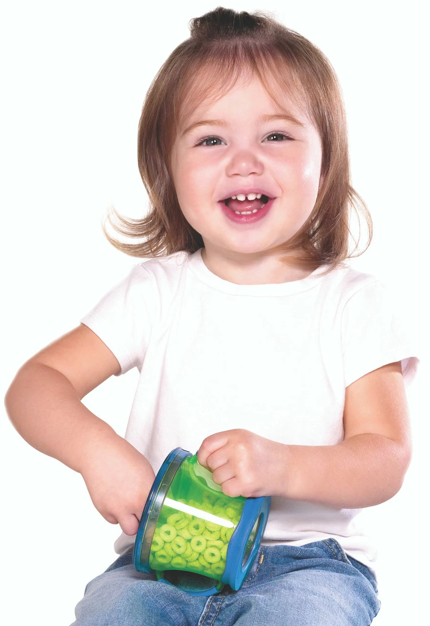 Sometimes it seems all you have to do is follow a trail of crumbs to find your little one. Munchkin’s best-selling Snack Catcher® to the rescue! This portable snack bowl allows independent toddlers to self-feed with a bit more dexterity and a lot less mess. Kids love accessing snacks all by themselves through the soft, flexible flaps, and mums love that those same flaps help prevent food spills all over the house and car. Each spill-proof Snack Catcher® cup has two handles designed for even the littlest hands to grasp easily, and a no-slip rubber bottom to keep it in place on the dinner table, in the high chair, or during lunchtime at school. Snack Catcher® food containers are a must-have for toddlers on the move. And because snacks come out only when they want them to, snack time no longer means food everywhere except your child’s mouth. Win-win for all!