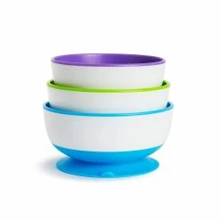 Let’s face it. Toddlers can get a little rambunctious at dinner time (make that all the time). But you no longer have to duck for cover from a flying bowl of macaroni & cheese. Minimize unnecessary messes with our convenient three-pack of Stay Put suction bowls. The strong suction base will adhere to most surfaces, and the quick release tab makes removal easy for adults. Microwave and top-rack dishwasher safe, food prep and clean up is easy and quick, too. Now if only you could keep your toddler in place so easily!
