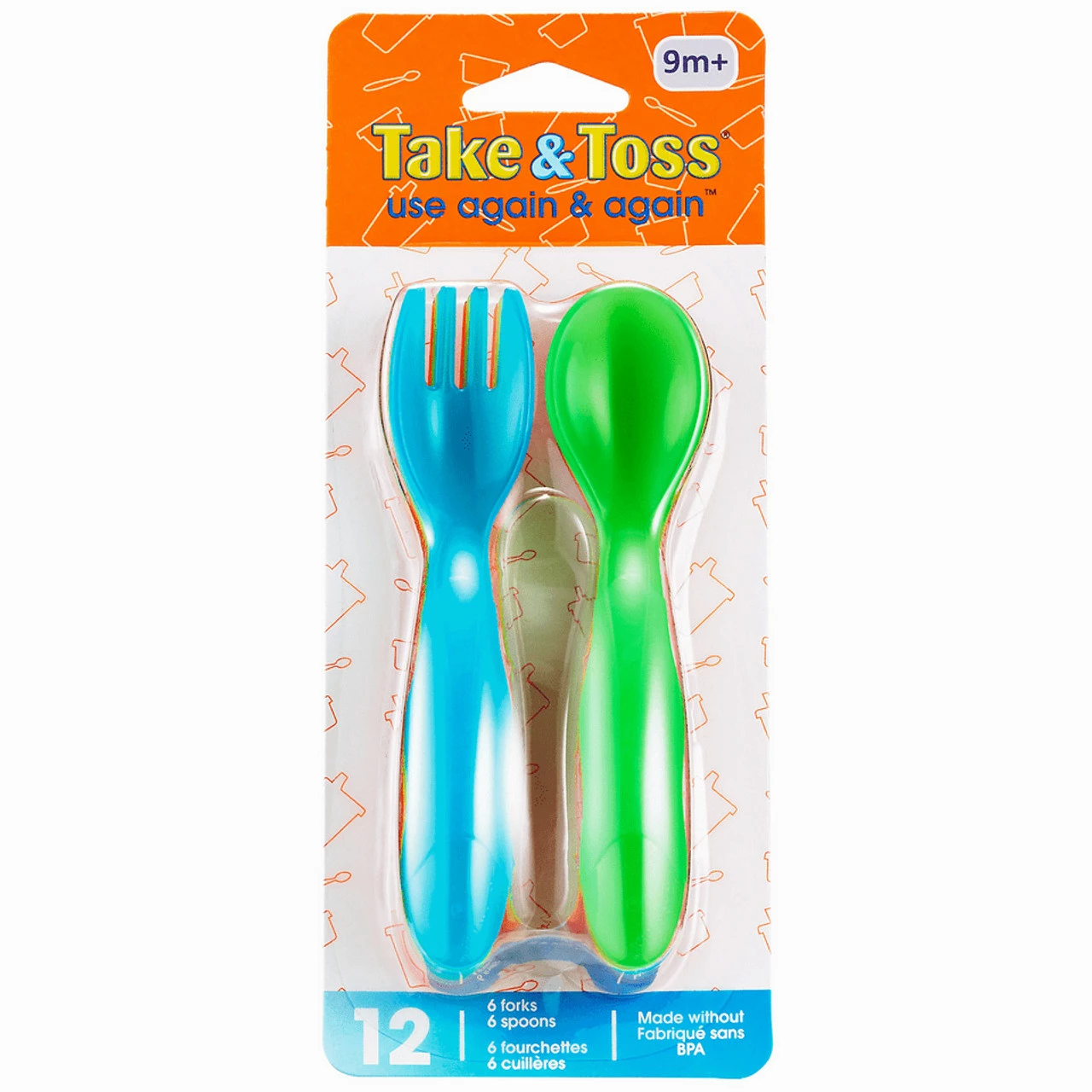 Take & Toss Forks and Spoons help you reduce, reuse and recycle! This dishwasher safe flatware can be used again and again, but doesn’t cost a lot. When it’s time to let them go, they can be recycled in many communities. Made without BPA, these durable forks and spoons are perfect for families both at home or on the go. Kids love the fun colors and parents love that the handles make them easy for their toddler to grip. The fork’s rounded tines and spoon-like shape help your little one as they learn to eat on their own. The spoon’s bowl is designed to make scooping easy. Use them on the go or brighten up your child’s party with their fun colors!