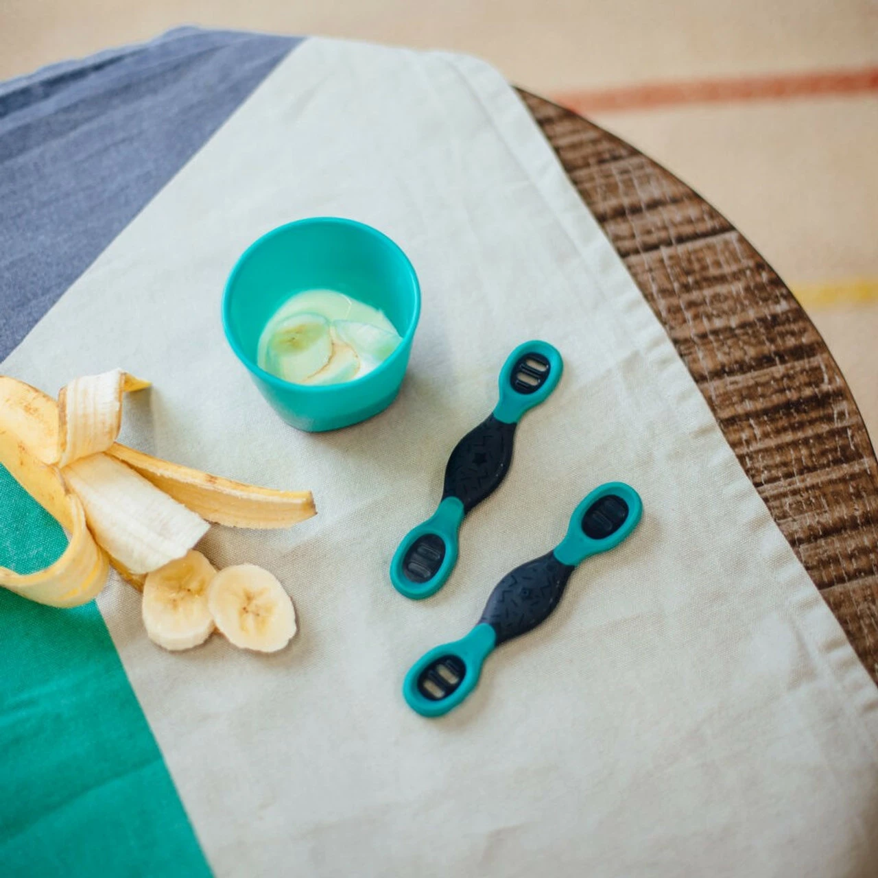 This cleverly designed self-feeding spoon allows your baby to easily start to learn how to self-feed. The reversible “anyway-up” design features chunky handles making it easy to hold and control. The special slotted design allows baby to simply dip the spoon into the bowl to and it will grip food making learning fun for baby and you as more food on the spoon means more food in the mouth. Full baby, happy baby, happy mum. With hygiene at the forefront of everyone’s minds our spoons add an extra layer of reassurance as they are made with BACSHIELD antibacterial technology. BACSHIELD is a commonly used silver-ion technology that provides antimicrobial product protection against unwanted microbes, recognised for centuries with no harmful effects. It works by preventing the growth of unwanted microbes that can cause product degradation, discolouration, staining or odour. This is achieved with silver ions, preventing microbes from multiplying. BACSHIELD is tested to ISO 22196:2011 standards. We also undertake ongoing quality control tests and environmental risks. We use the most recognised leader and most trusted suppliers of antimicrobial technology for polymers. All our products are BPA, BPS, PVC, Phthalate and Nitrosamine free. Suitable for babies 4m plus.Hygienic: Made with BACSHIELD antibacterial technology – reduces bacteria by up to 99.9%. It prevents the growth of unwanted microbes that cause degradation, discoloration, staining and odour Just dip, no scoop: Designed to allow baby to easily learn to self-feed, the special slotted design of the Smushee weaning spoon means your baby can simply dunk the spoon in their bowl to grip the food Reversible and soft: This weaning spoon is fully reversible so there is no right or wrong way to hold it. The soft spoon tips are gentle on baby’s delicate mouth and gums Chunky handles: The Smushee Self-Feeding weaning spoons feature chunky handles making them easy to hold and control Easy clean and BPA-free: These spoons are easy to clean and also steriliser and dishwasher safe. All our products are BPA, BPS, PVC, Phthalate and Nitrosamine free.