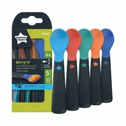 When baby is ready to feed themselves, there is not stopping them. So, we’ve designed our self-feeding spoons to make it easy for them to grip, scoop and feed themselves so you can rest assured they get as much out of the bowl and into their mouths as possible. Full baby, happy baby, happy mum. The Tommee Tippee Easigrip Self-Feeding Weaning Spoons are perfect for your little ones first self-feeding adventures. With chunky handles for an extra-tight grip, your child will find them easy to hold and control. The wide and deep spoon base makes scooping up food easy meaning there’s more chance of food ending up in their mouths instead of on the floor! With hygiene at the forefront of everyone’s minds our spoons add an extra layer of reassurance as they are made with BACSHIELD antibacterial technology. BACSHIELD is a commonly used silver-ion technology that provides antimicrobial product protection against unwanted microbes, recognised for centuries with no harmful effects. It works by preventing the growth of unwanted microbes that can cause product degradation, discolouration, staining or odour. This is achieved with silver ions, preventing microbes from multiplying. BACSHIELD is tested to ISO 22196:2011 standards. We also undertake ongoing quality control tests and environmental risks. We use the most recognised leader and most trusted suppliers of antimicrobial technology for polymers. All our products are BPA, BPS, PVC, Phthalate and Nitrosamine free. Suitable for babies 6m plus. Hygienic: Made with BACSHIELD antibacterial technology – reduces bacteria by up to 99.9%. It prevents the growth of unwanted microbes that cause degradation, discoloration, staining and odour Durable: Perfect for your child’s first self-feeding adventures, these spoons are bite-proof, chew-proof, drop-proof and throw-proof – these spoons can withstand a lot! Chunky handles: These Easigrip weaning spoons feature features chunky handles for an extra-tight grip making them easy to hold and control Wide and deep spoon base: This wide spoon makes scooping easy and the depth means more food gets in their mouths instead of on the floor Easy clean and BPA free: Easy to clean and also steriliser and dishwasher safe. All our products are BPA, BPS, PVCS, phthalate and nitrosamine free