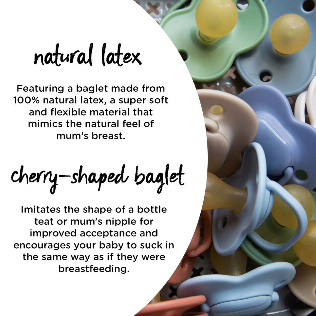 The instinctive action of sucking helps to calm and soothe babies and all parents know there’s nothing more wonderful than a calm, content baby. So, when you need to turn screams and sobs into smiles and sleep, simply pick up a Tommee Tippee Natural Latex Soother – Australia’s No.1 Natural Latex Cherry Soother*. The Tommee Tippee natural latex soother is our most natural soother and features a cherry-shaped baglet made from 100% natural latex for added reassurance. Latex is a super soft and flexible material which is similar to the feel of a mother’s nipple and breast so there’s less chance of confusion when your baby is switching between breast and soother. The round, cherry-shaped baglet mimics the shape of a bottle teat or nipple to encourage your baby to suck in the same way as if they were breastfeeding. Featuring a reversible baglet, this soother has no “wrong side-up” so it will always be placed correctly in your baby’s mouth, even when your baby puts it in their mouth themselves. The curved shield sits comfortably between baby’s chin and nose and the holes in each side allow extra air flow and prevent the build-up of moisture to help protect baby’s delicate skin against irritation. Simple but stylish, the beautiful solid block colours of this cherry latex soothers range are modern and timeless and are sure to complement any outfit Easy to clean, either by hand, on the top shelf of the dishwasher and suitable for all forms of sterilisation. In the interests of hygiene, we recommend that you change your baby’s soother every month. Always check the soother before each use and replace at the first signs of damage or weakness. Tommee Tippee recommends stopping soother use when your child is older than 36 months. All Tommee Tippee soothers are BPA free for your ultimate reassurance. * IRI MarketEdge data MAT to 22/11/20.Australia’s No.1 Natural Latex Cherry Soother*: Featuring a baglet made from 100% natural latex, a super soft and flexible material that mimics the natural feel of mum’s breast Round cherry-shaped baglet: Imitates the shape of a bottle teat or mum’s nipple for improved acceptance and encourages your baby to suck in the same way as if they were breastfeeding Reversible baglet: With no “wrong-side-up” this soother will always be placed correctly in baby’s mouth, even when your baby puts it in their mouth themselves Kind on baby’s skin: The curved shield ensures a comfortable fit between baby’s nose and chin and the holes allow extra air flow and prevent moisture build-up to help prevent skin irritation Trendy design: Simple but stylish, the beautiful solid block colours of this soother range are modern and timeless and are sure to complement any outfit Easy Clean: All Tommee Tippee soothers are top-rack dishwasher safe and steriliser safe