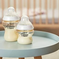 With our Closer to Nature PPSU baby bottle, switching between breast and bottle feeding has never been simpler. Made from polyphenylsulfone (PPSU), a medical grade, naturally amber-toned plastic, these baby bottles are highly durable, and heat-resistant and won’t retain odours or stains left behind by breast milk or formula. Due to the highly resilient nature of the bottle material, these baby bottles are ideal for regular use and can withstand frequent sterilisation. Made from super soft, resilient silicone, this bottle teat features a matt texture that feels closer to skin for complete comfort at feeding time. Designed with breastfeeding experts, our baby bottle teats are shaped like a breast because babies prefer it that way. The patented ripple design allows the teat to mimic the natural flex, stretch and movement of a mum’s breast to support in the transition between breast and bottle. Featuring an Easi-vent valve that reduces excessive air flow, so little ones ingest more milk and less air, preventing symptoms of colic. Together with the bottle’s sensitive valve, the wide bottle neck encourages your baby’s intuitive feeding action. Designed to be held in the most natural position during feeding, the compact shape of the bottle also allows baby to be closer to you. The wide neck bottle makes cleaning easy, and the bottles are suitable for use in the dishwasher, microwave and steam sterilisers. Simply unscrew your baby bottle into three parts for easy cleaning and sterilising. Which flow rate do I need? We offer different flow rates to keep up with your growing baby. Every baby is different but as a guide we suggest slow flow for 0+months, medium flow for 3+ months and fast flow for 6+ months. Closer to Nature teats are only compatible with Closer to Nature bottles. How often should I replace the bottle teats? We recommend changing your bottle teats every two months. And you should change them immediately if they’re damaged, weak or have been bitten by tiny teeth. Durable and heat resistant: The bottle base is made from polyphenylsulfone (PPSU), a medical-grade, naturally amber-toned plastic that won’t retain odours or stains left by breast milk or formula Super soft silicone teat: Made from super soft, resilient silicone, this bottle teat features a matt texture that feels closer to skin for complete comfort at feeding time Breast-like teat for a natural latch: Designed with breastfeeding experts, our flexible, easy latch-on teat with patented ripple design mimics the natural flex, stretch and movement of a mum’s breast Anti-colic: Sensitive Closer to Nature teat with Easi-Vent valve reduces excessive air flow, so little ones ingest more milk and less air, preventing symptoms of colic Wide bottle neck: The wide bottle neck makes cleaning easy and encourages your baby’s intuitive feeding action whilst the compact bottle shape allows baby to be closer to you